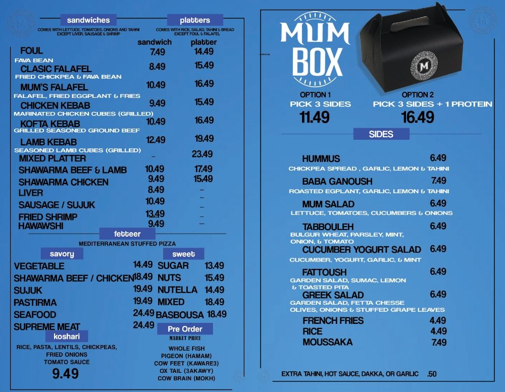 MUM Mediterranean Cuisine Menu (Update 2025)
